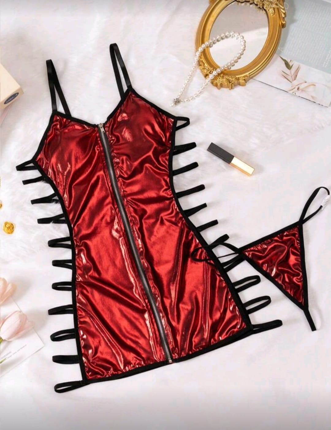 Vestido metálico con tanga, con huecos laterales, disponible en 2 tonos: